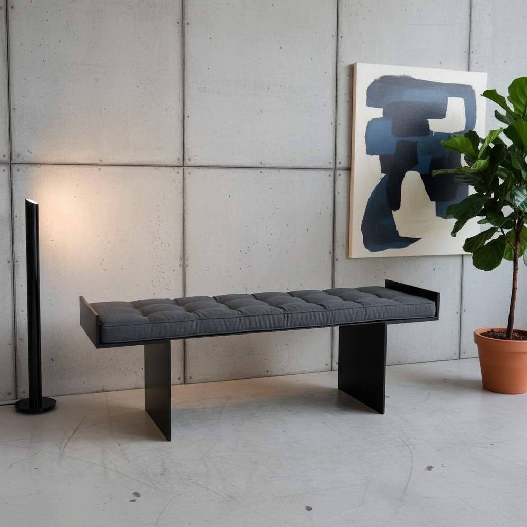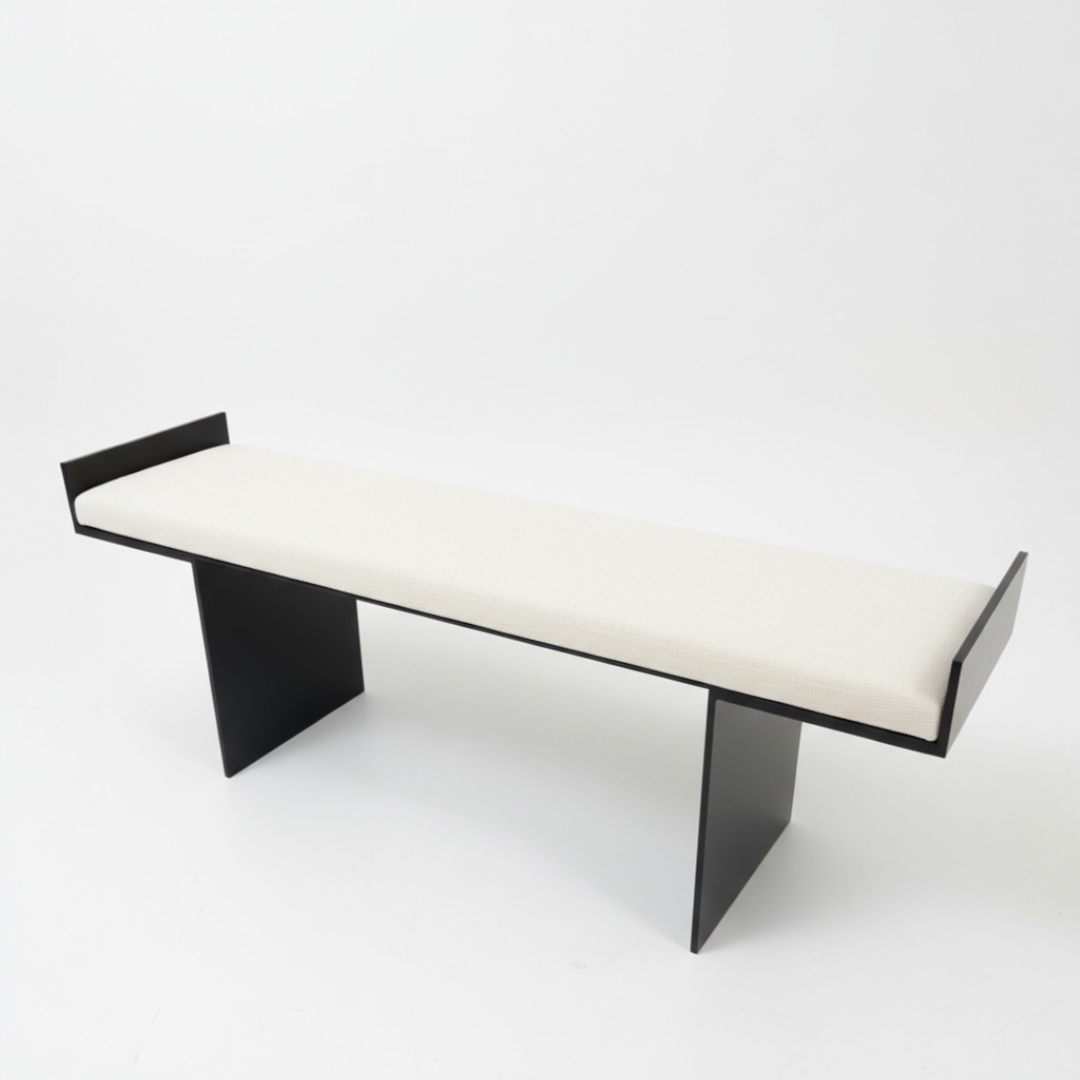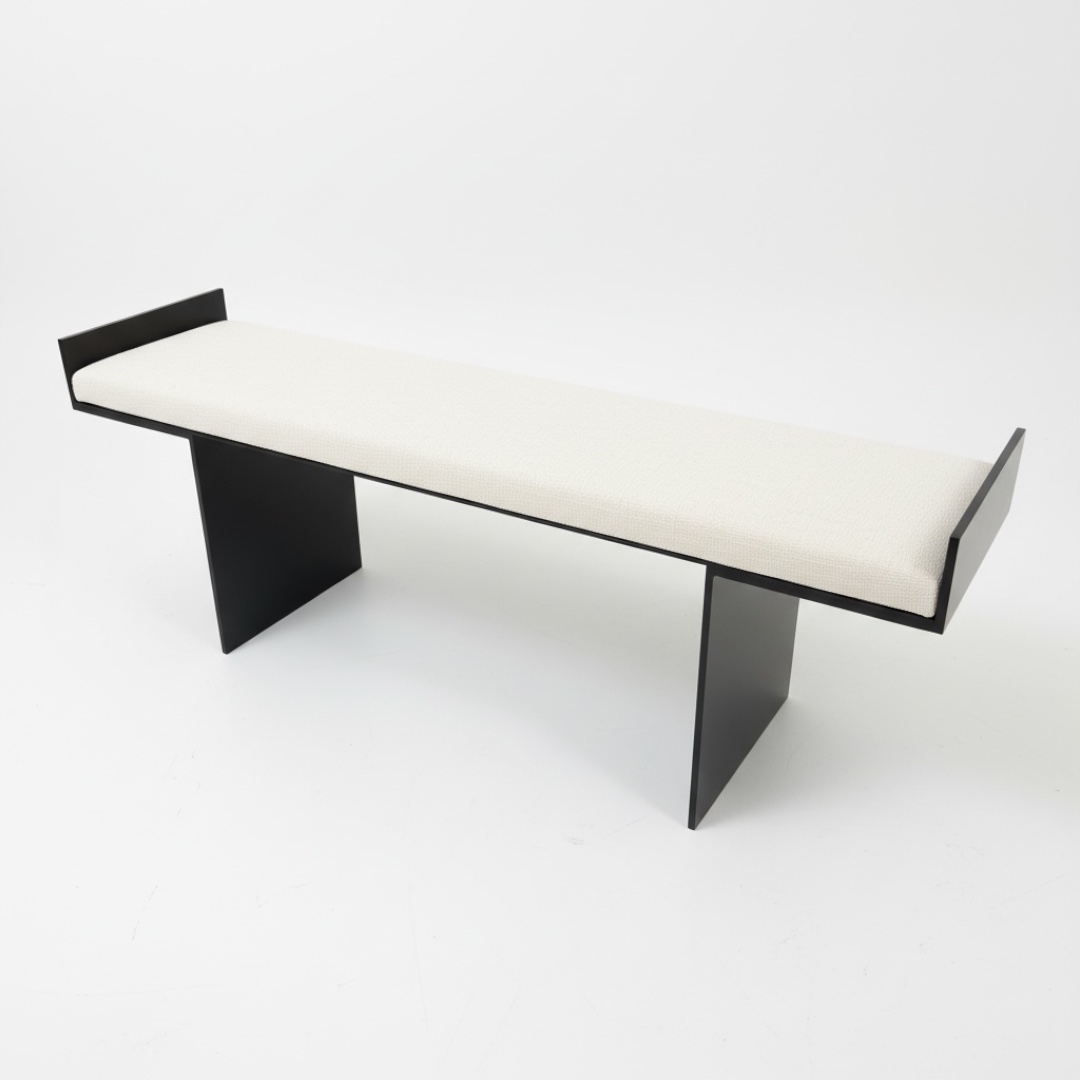 Shown: MIsa Bench in Tarnished Nickel with COM Upholstery.