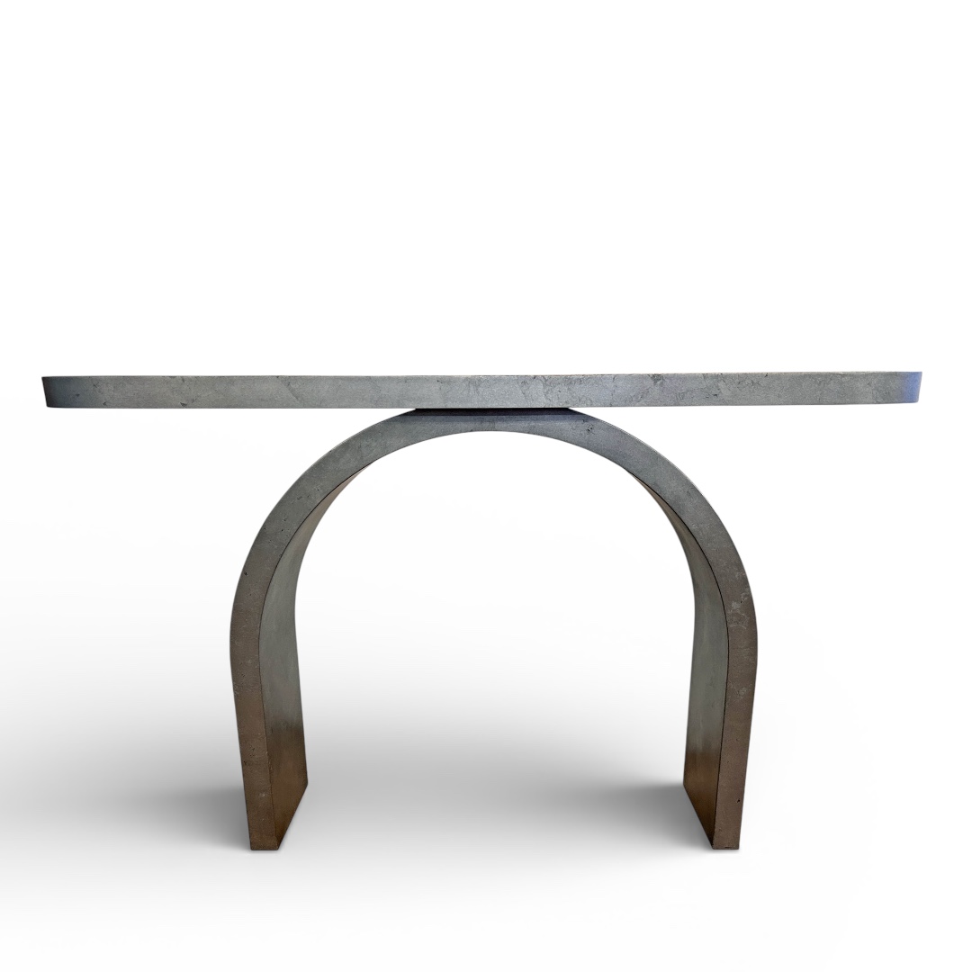 Shown: Nagato Rectangle Dining Table with Sloped Rectangle Base in Silver Tea.