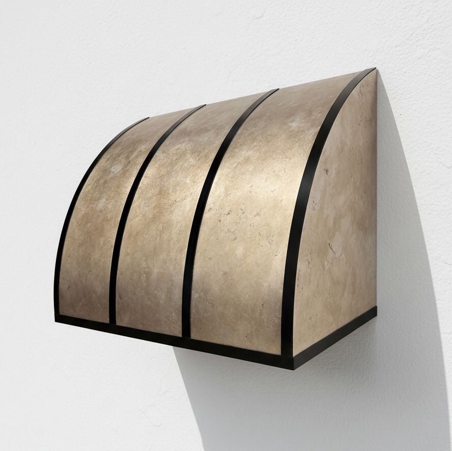 Transform your kitchen into a masterpiece with the stunning Solera kitchen range hood. Combining elegance and functionality, its unique curved design with a two-tone finish and strapping (surcharge) is a true showstopper. Perfectly blending modern sophistication with rustic charm, this range hood doesn't just ventilate—it elevates!
